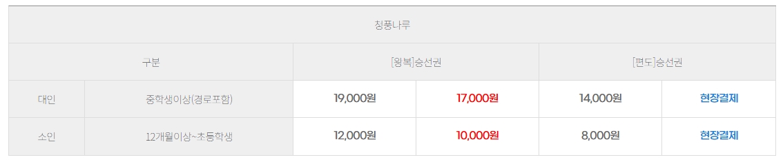 7. 이용요금 : 경로, 군인, 장애인, 국가유공자, 지역시민에 대한 요금할인 없어요.