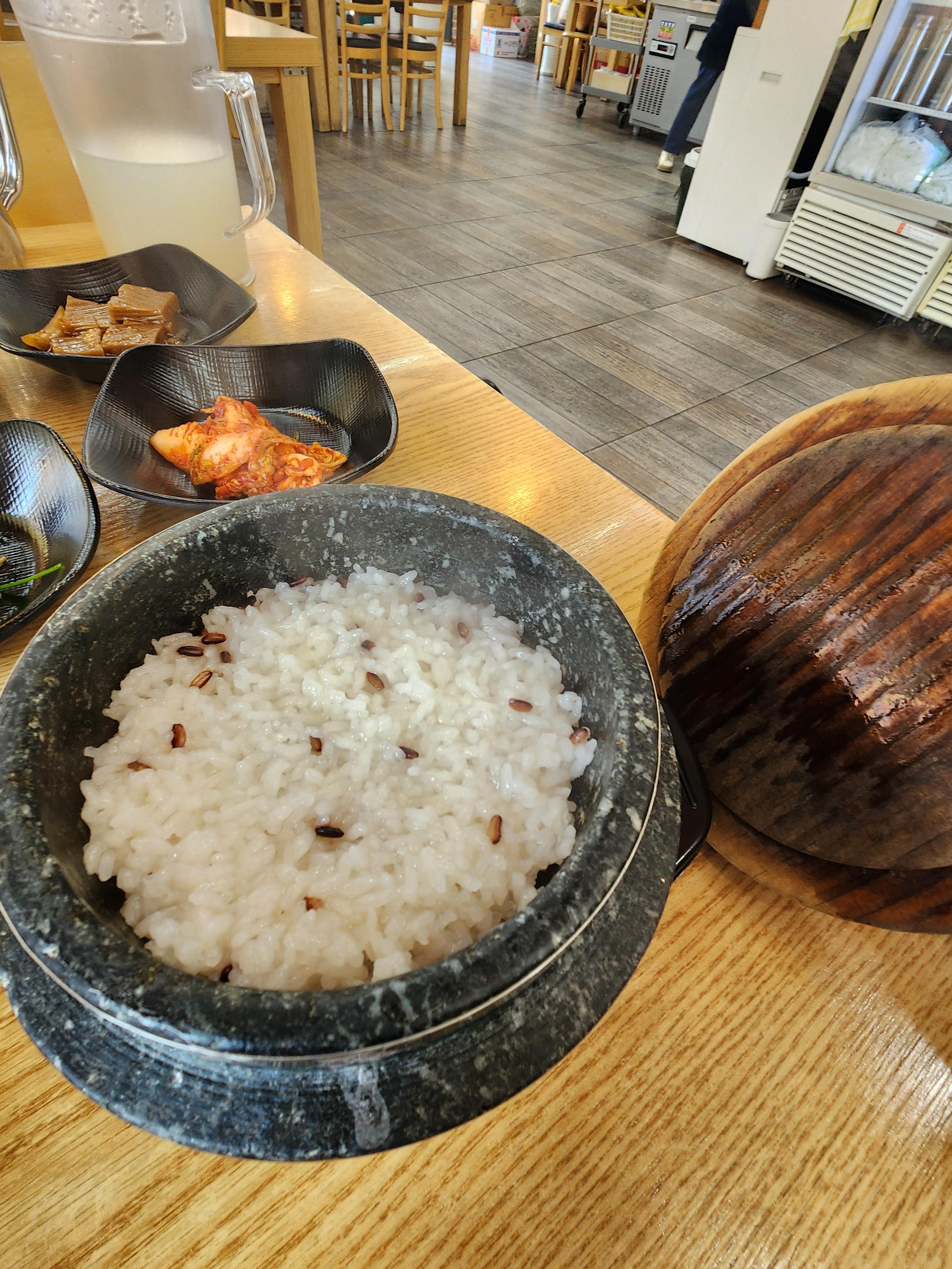 '웅? 밥은 왜 안 주지?' 물어볼까 하던 중에 돌솥밥을 가져다주시네요?