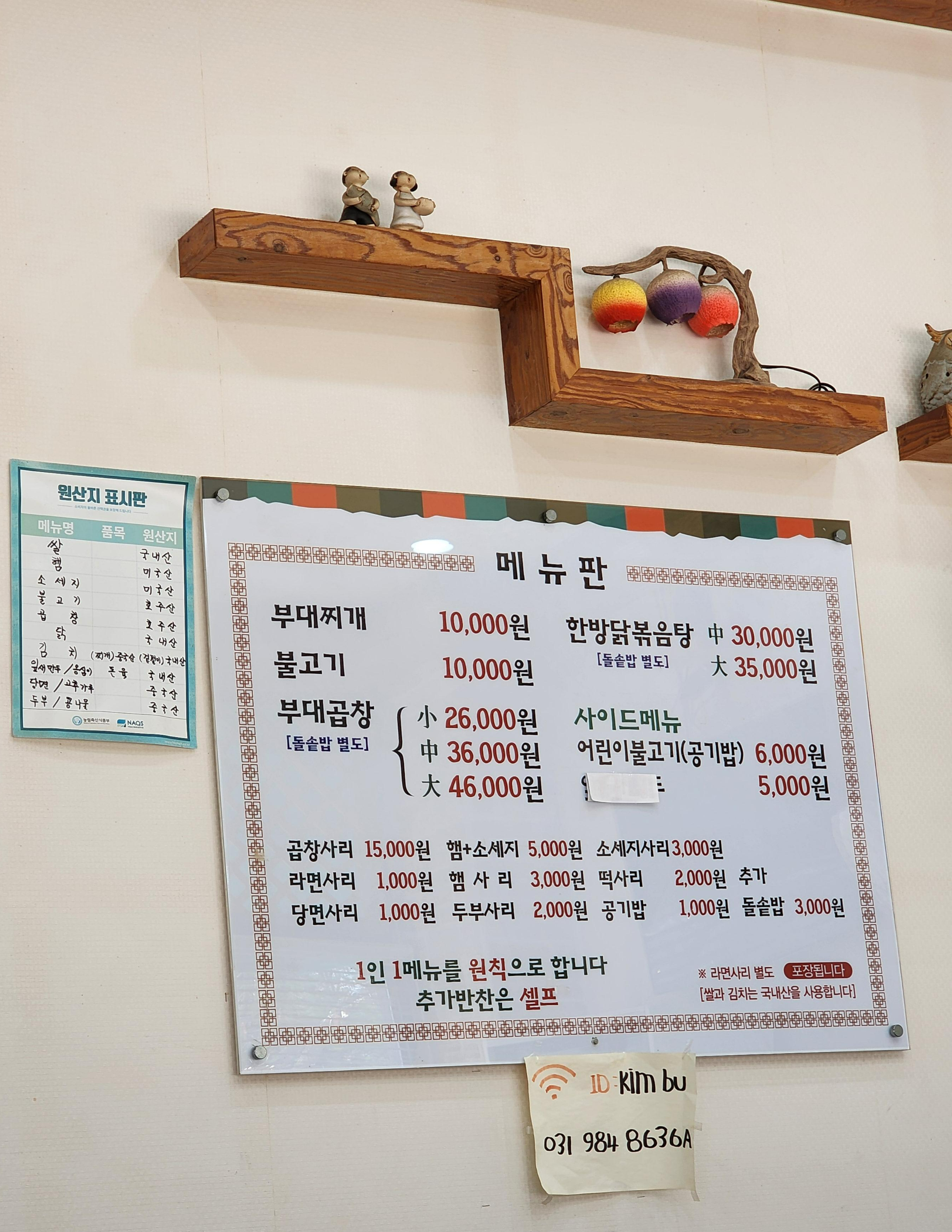 - 주 메뉴 : 부대찌개, 불고기, 부대곱창, 한방닭볶음탕