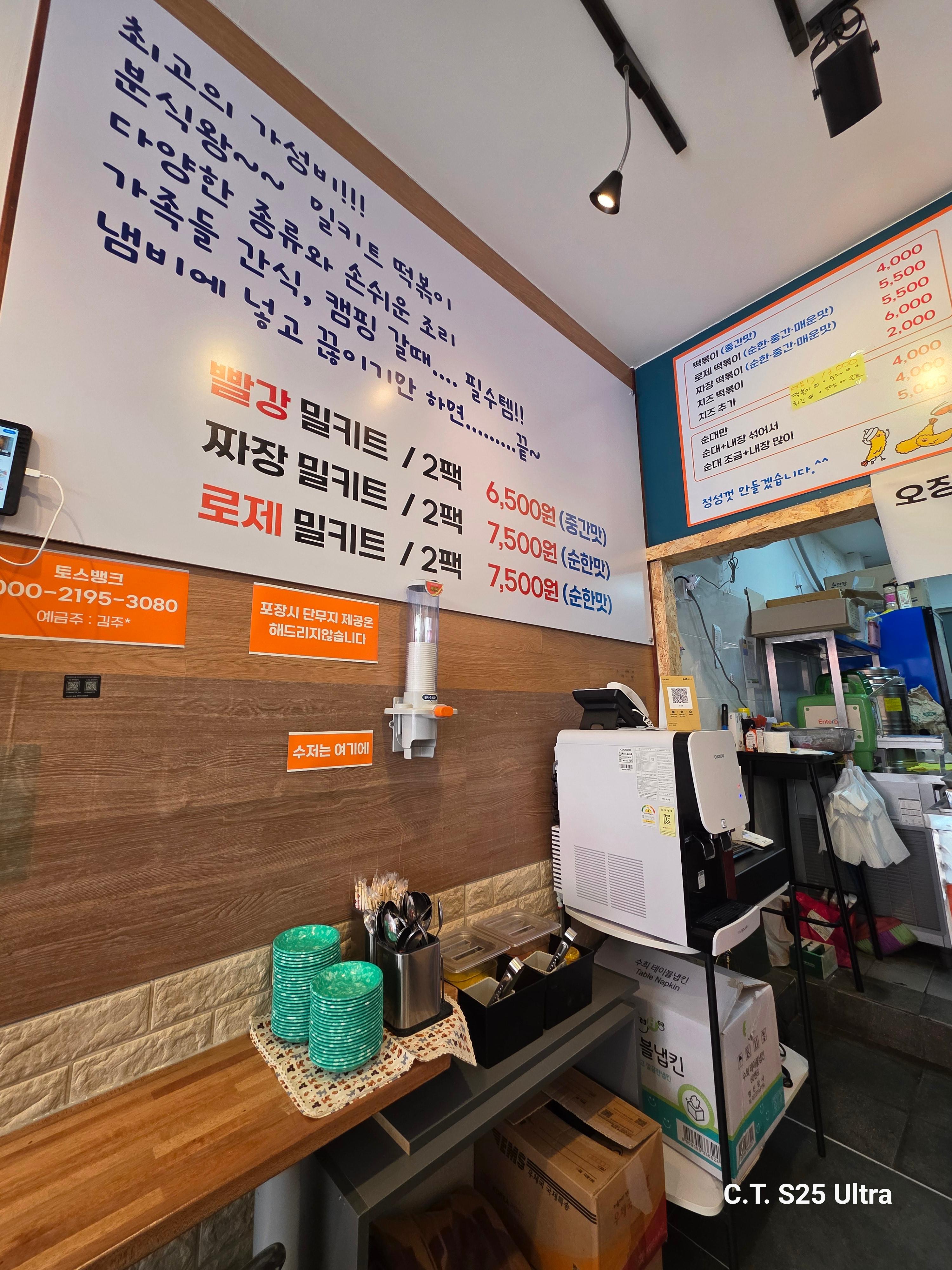 - 주요메뉴 : 떡볶이(일반, 로제, 짜장, 치즈), 순대, 튀김, 잔치국수, 비빔국수, 마요밥(참치, 치킨), 제육덮밥, 떡볶이 밀키트