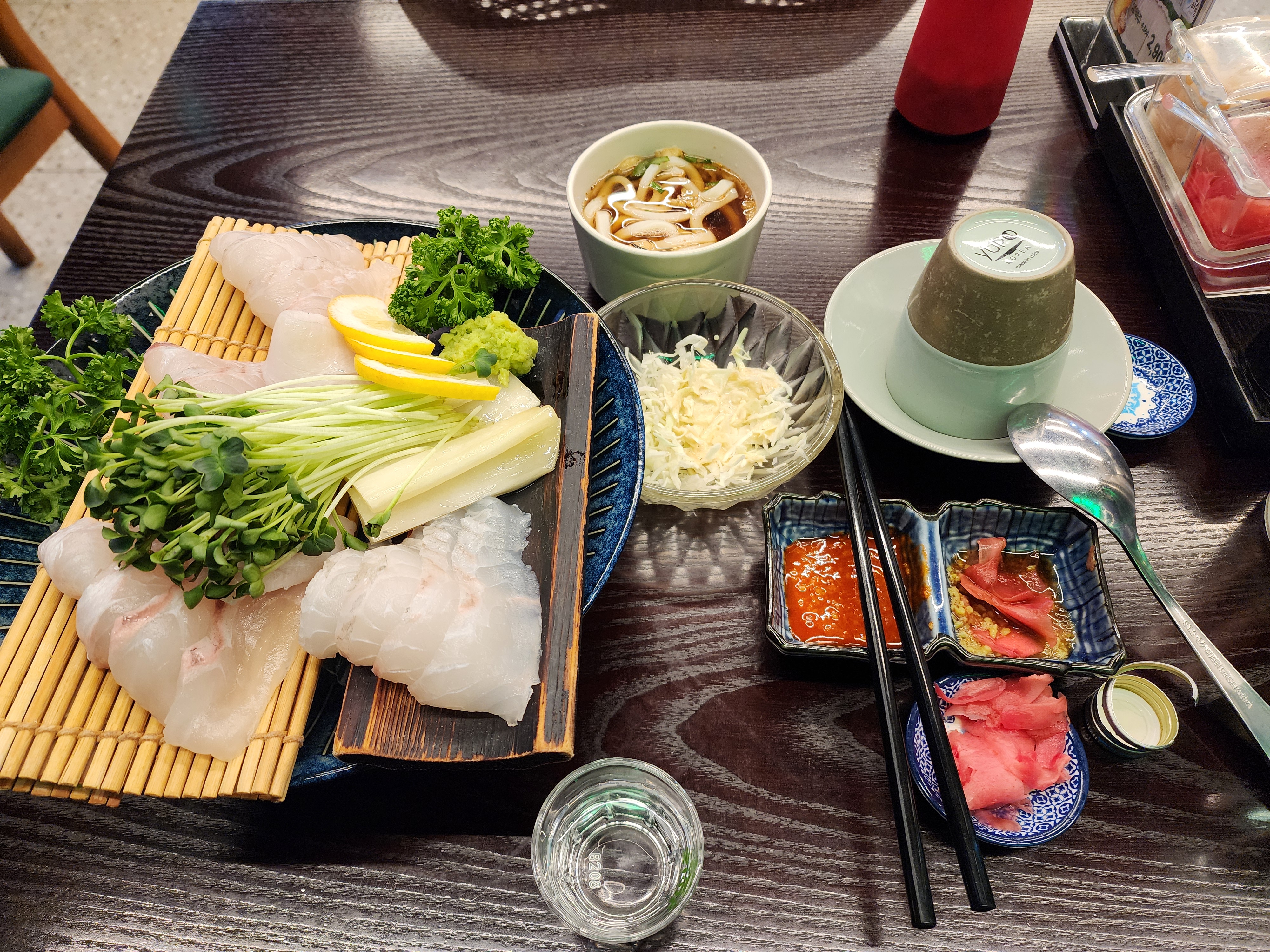 김포 장기동 맛집 [호랑이초밥]에서 사시미를 시키면 런치 모둠초밥 세트에 나왔던 미니 우동과 샐러드도 함께 주셔서 더 다양한 안주에 혼술 할 수 있는 기분이라 더 좋고, 2인용 사시미 한 접시에 소주 2병 마시면 기부니가 딱~ 좋아요~^^
