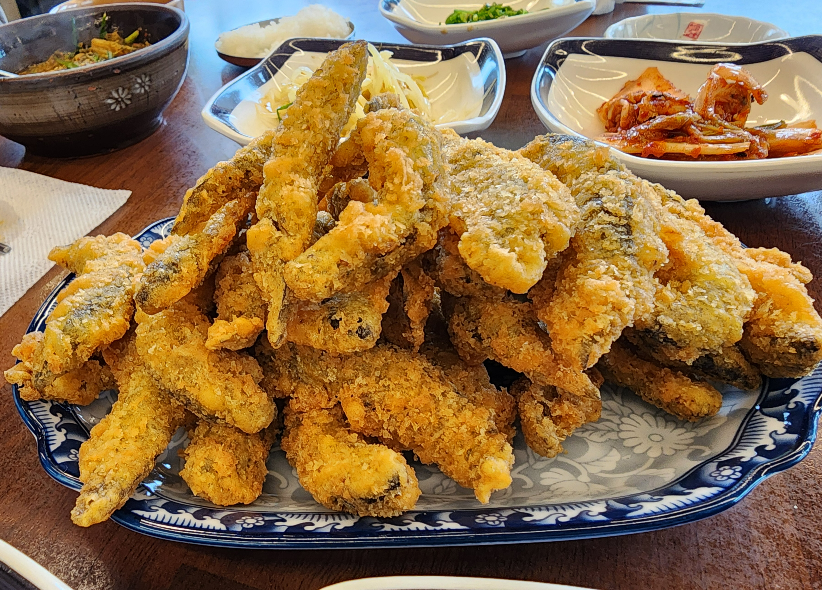 [부산집] 미꾸라지 튀김의 튀김옷은 일반 반죽이 아니라 빵가루가 들어간 걸로 보였는데요, 빵가루 덕분에 더 바삭했지만 빵가루 튀김옷 때문에 부드러운 미꾸라지의 느낌이 줄고 까끌까끌하게 느껴지는 점은 살짝 아쉽기도 했어요.