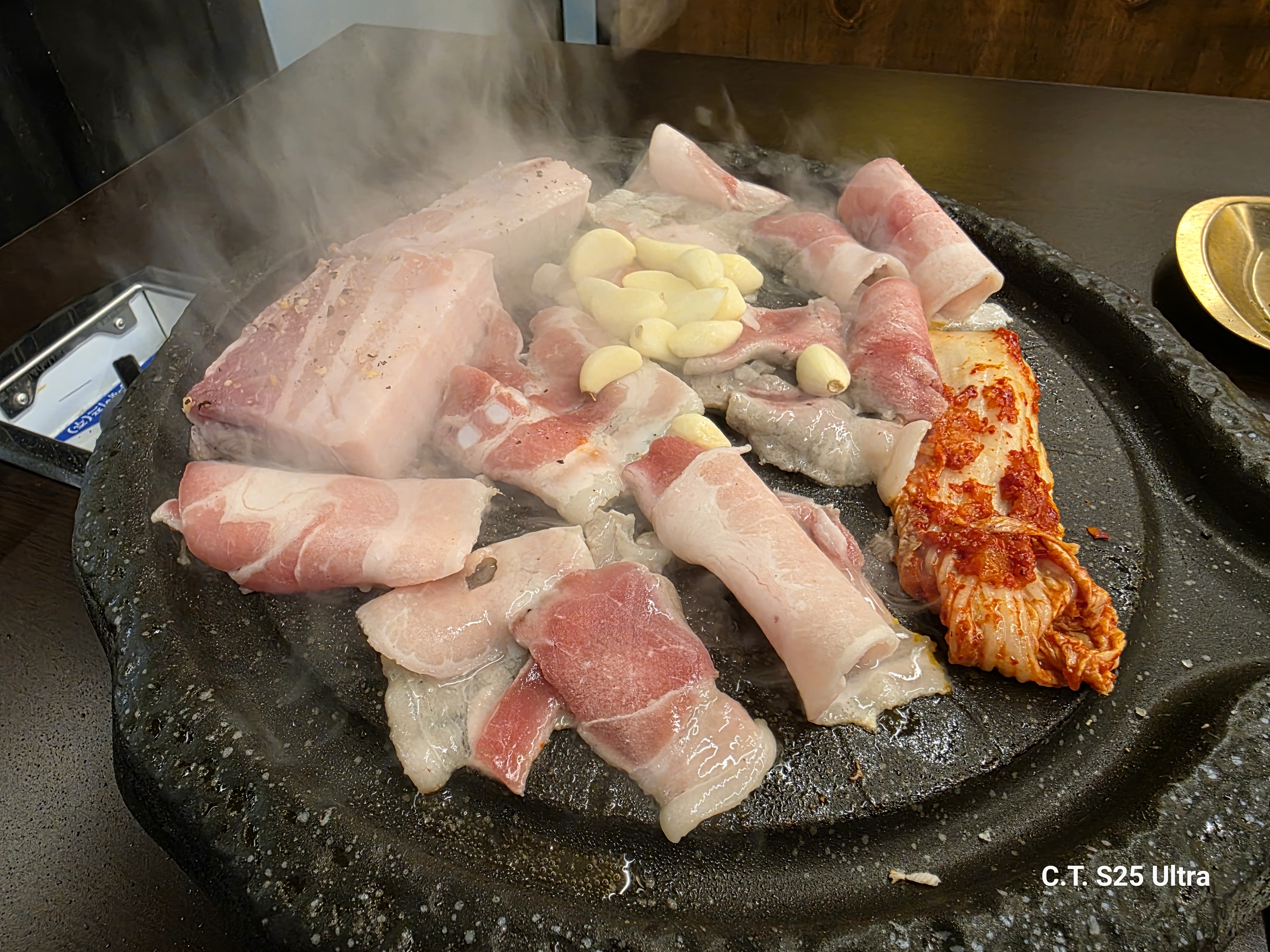 김치와 마늘도 함께 불판으로 고고 Go Go~!