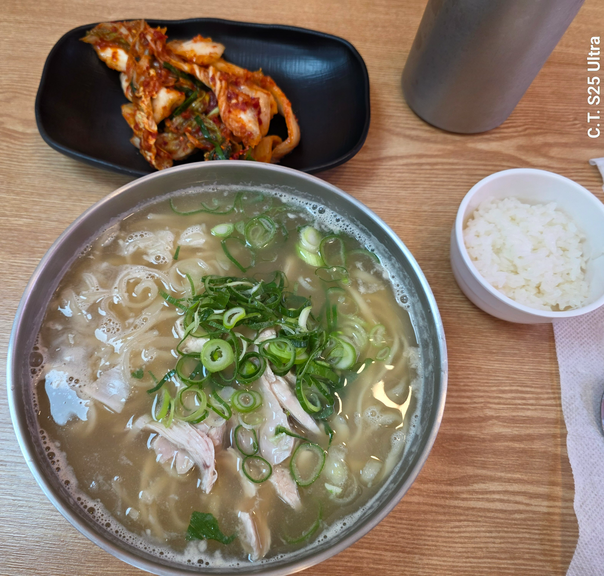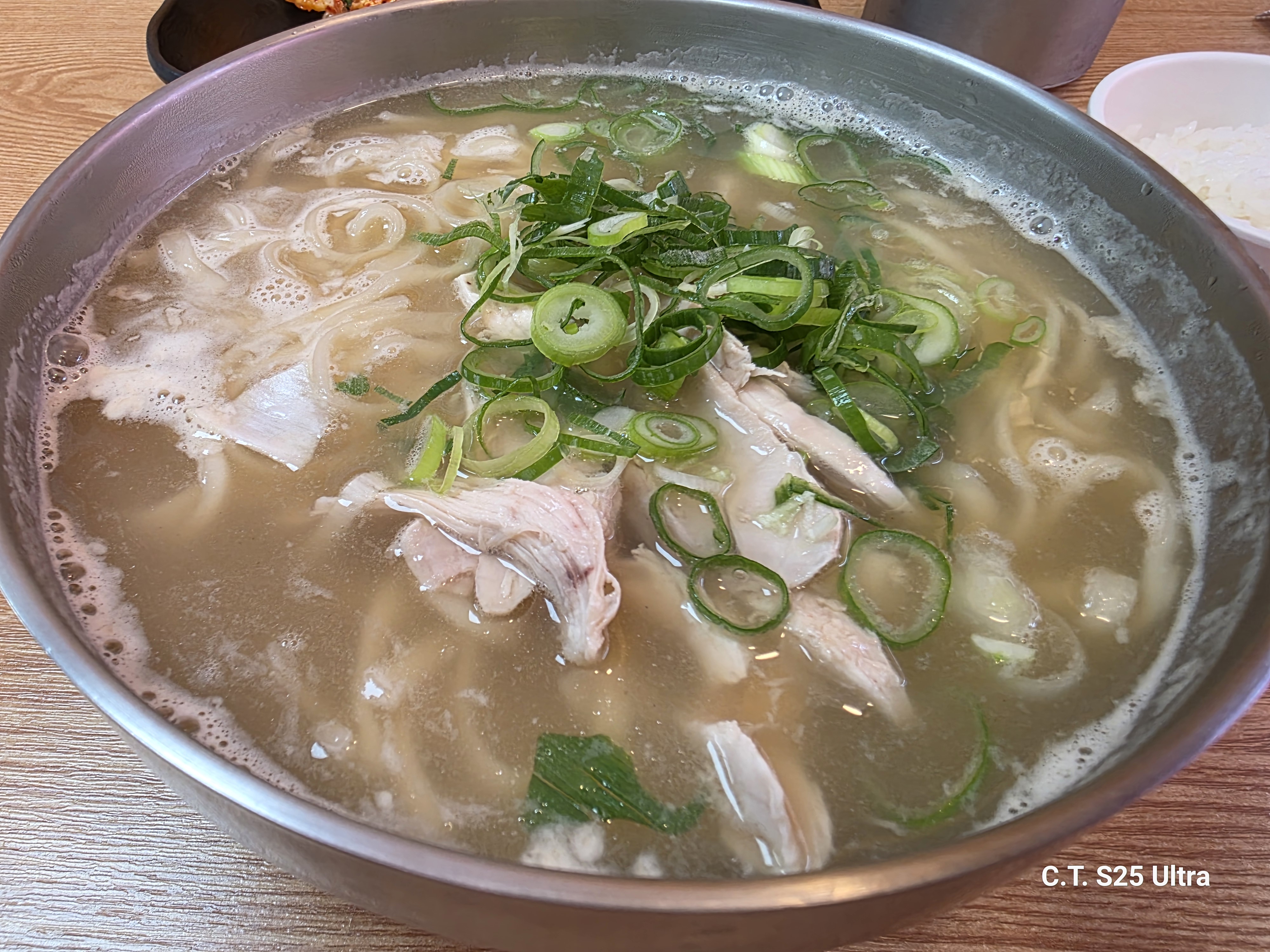 닭칼국수 면발은 탱글하구요, 육수는 진합니다.
