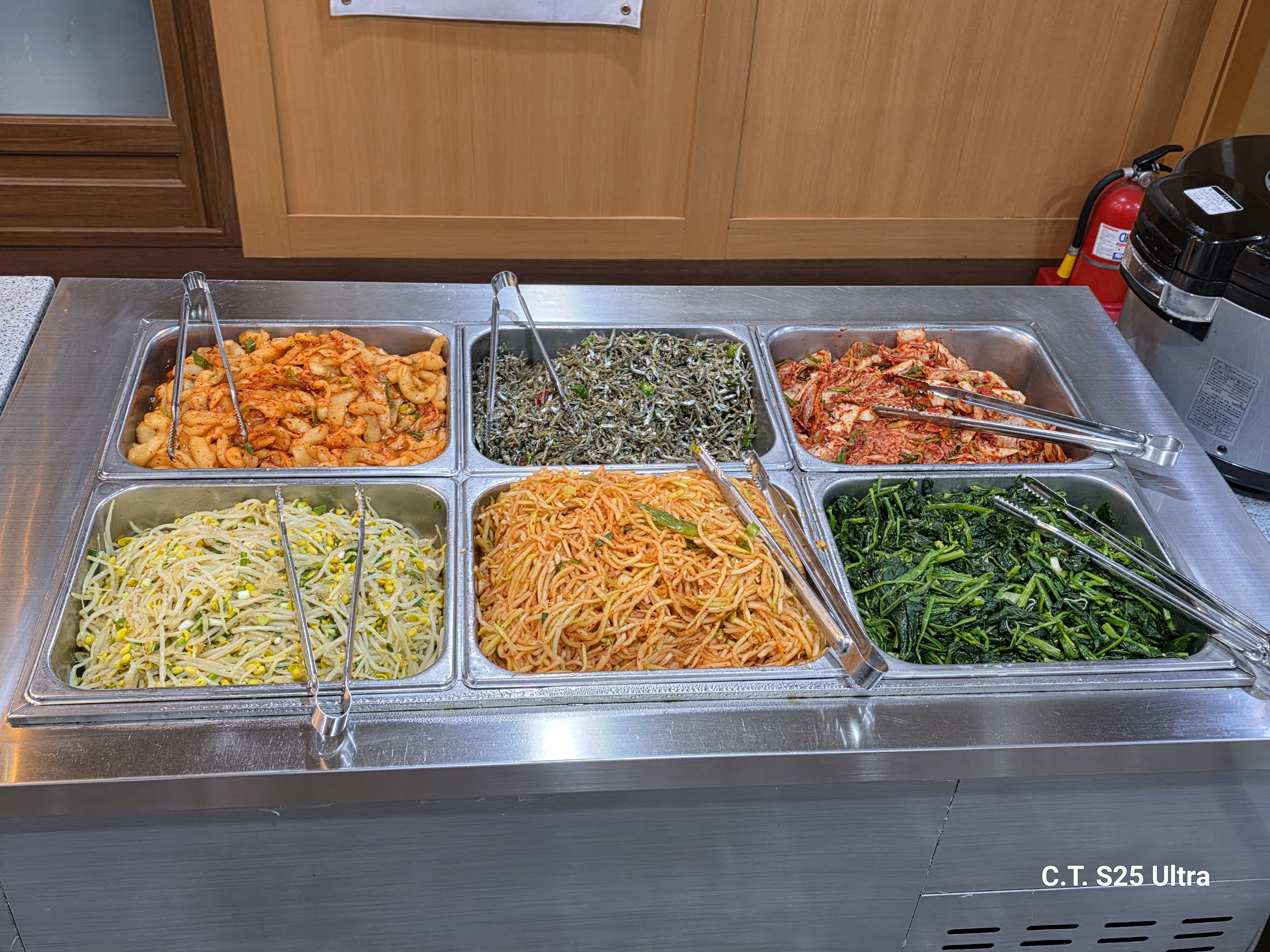 건물은 낡아보였지만, 직원분들이 계속해서 음식주변을 깨끗하게 정돈하시고, 식기들은 적외선 살균기 속에서 얌전~히 대기하고 있는 모습들이 청결해 보여서 좋았어요.