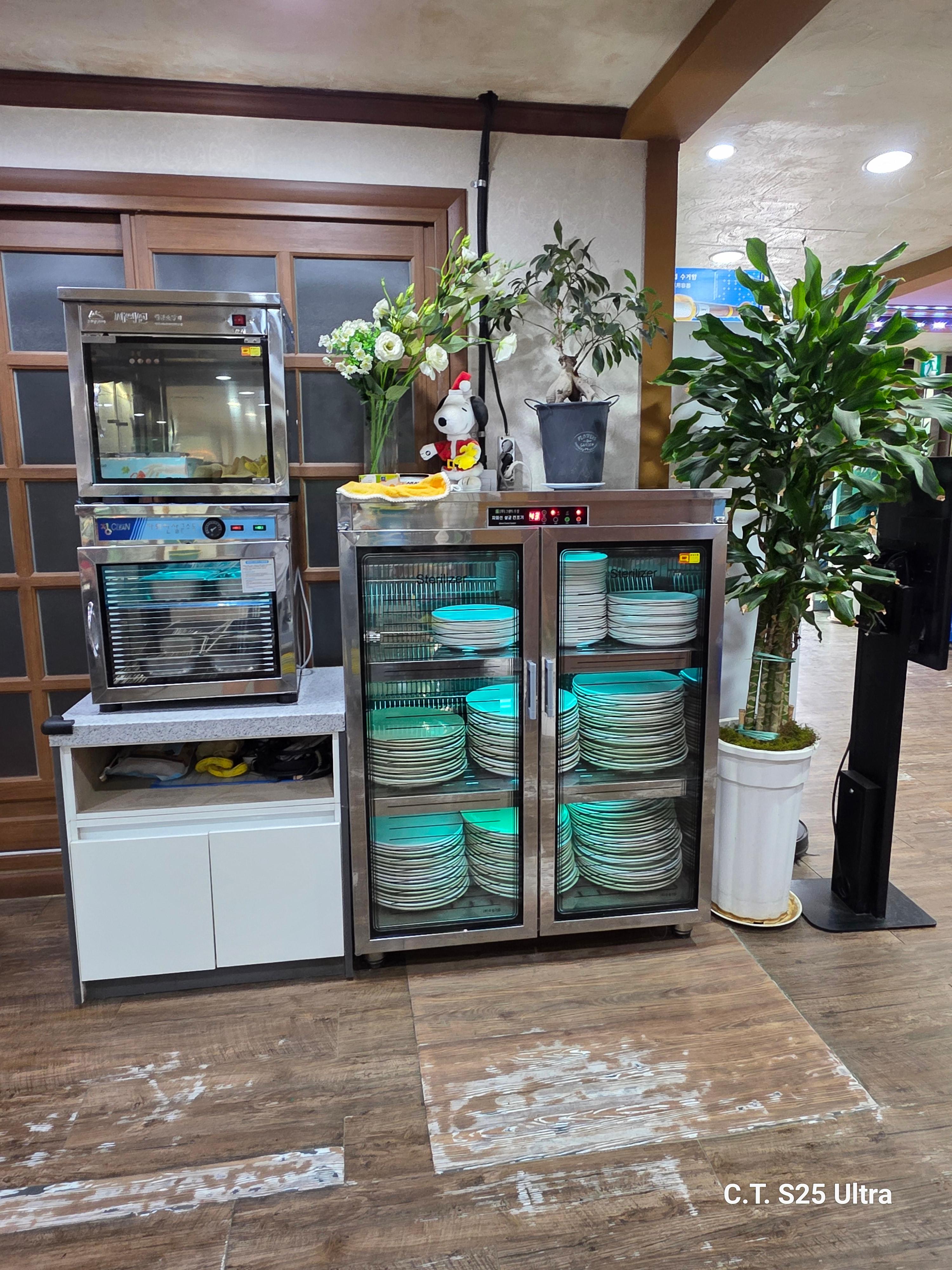 - 식당 청결 : 음식 주변도 계속 치우시고, 그릇들도 살균기 안에서 가지런히 정리된 모습을 보면 청결한 식당이라는 믿음이 뿜뿜~