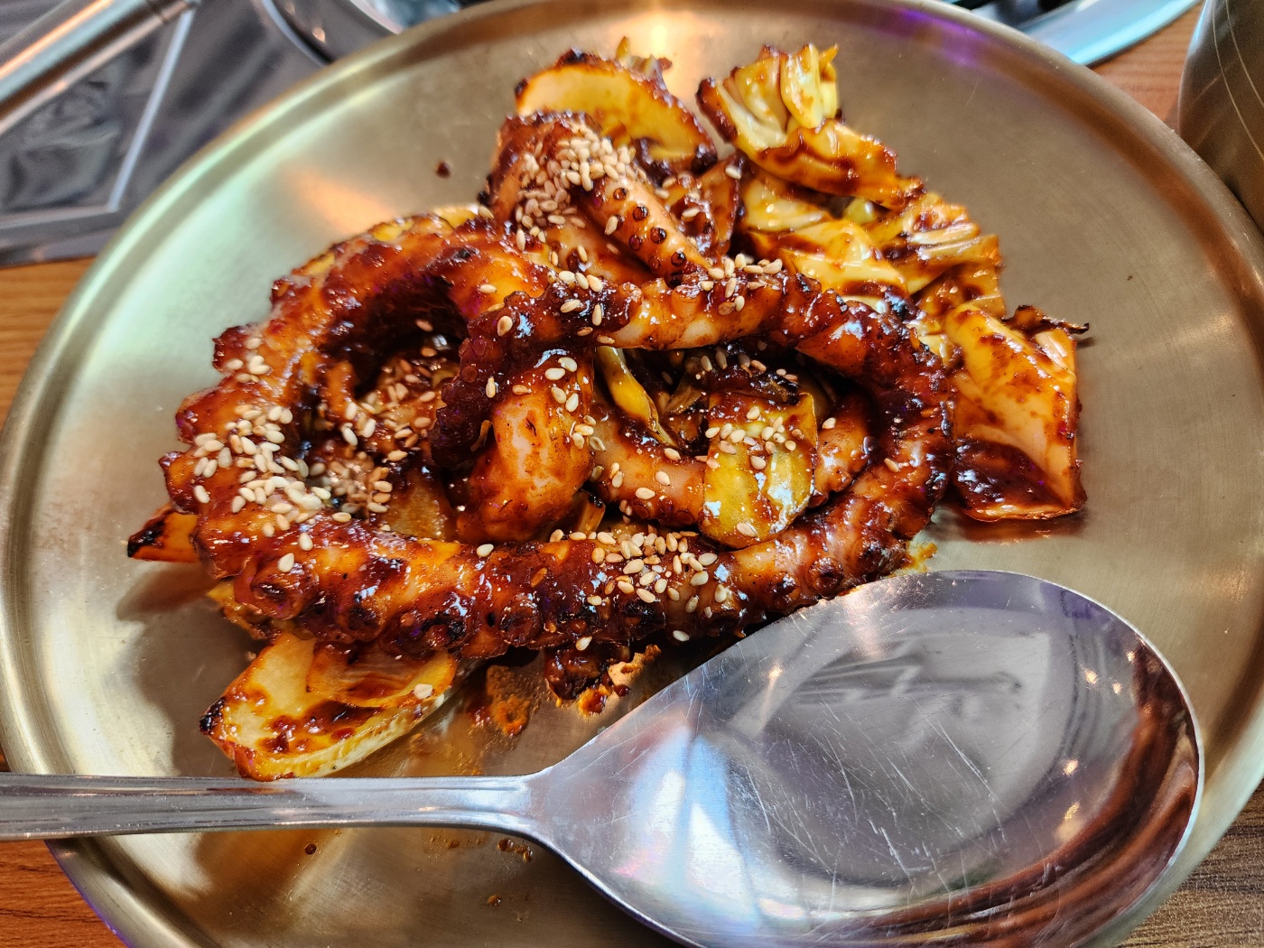 : 김포장기동맛집 <용호동낙지 김포장기점>에서 처음 먹어본 메뉴인데요, 적절한 불향에 통통한 낙지가 질기지 않게 잘 볶아져 나온 감칠맛 나는 메뉴였어요.