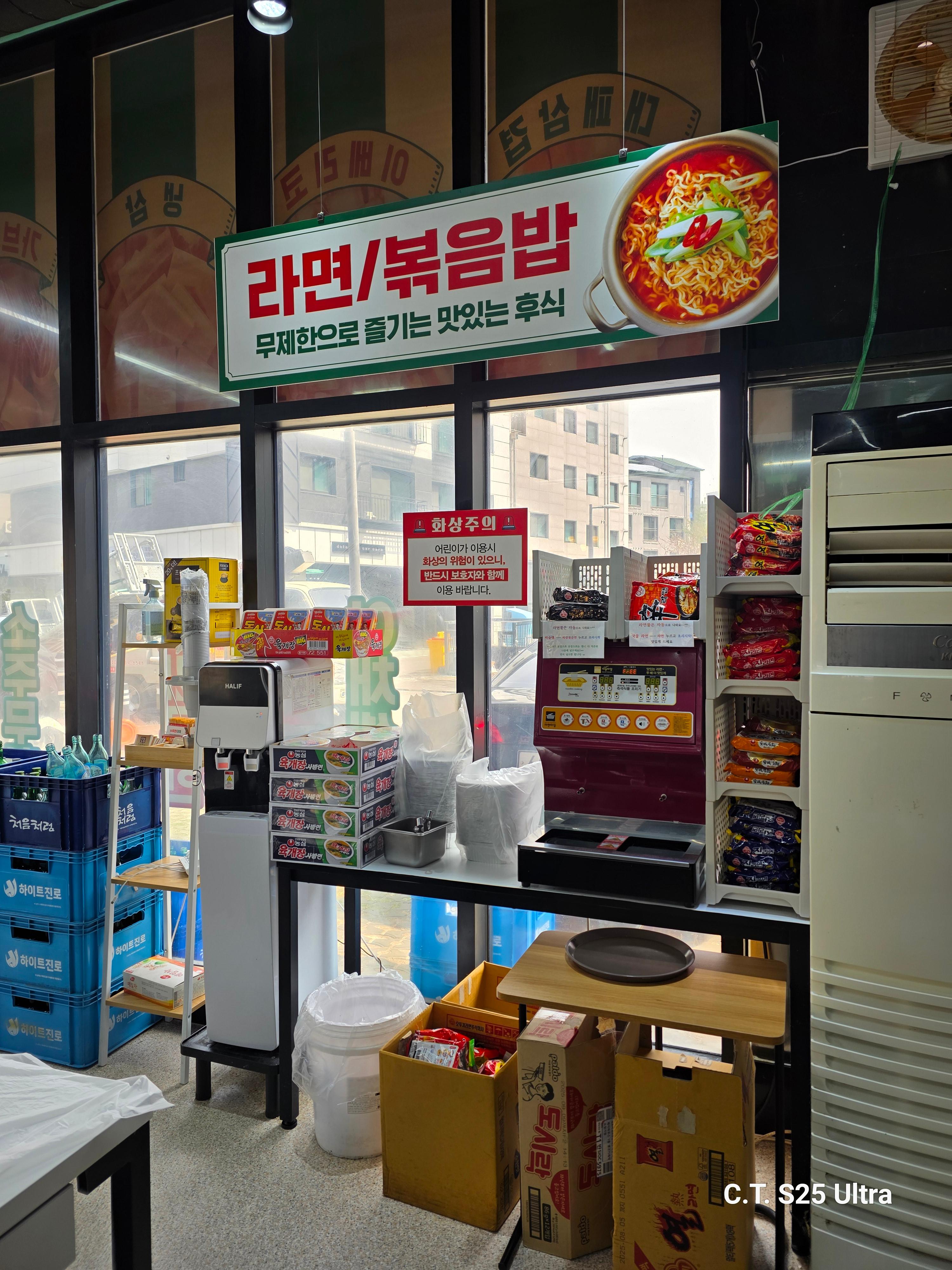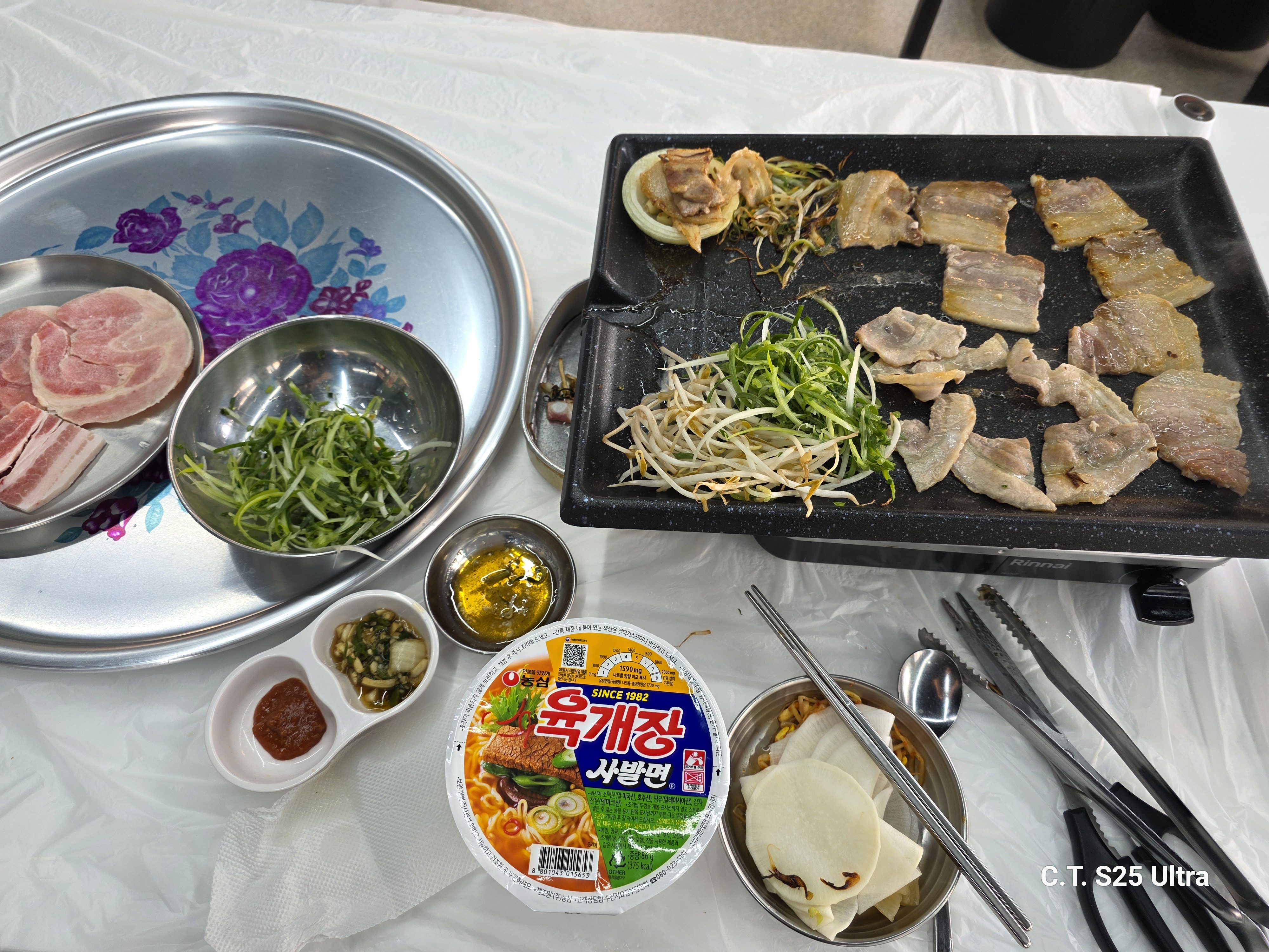 그래서 불판 위의 고기를 잠시 방치해 두고, 라면 코너로 갔더니 라면도 두가지 타입으로 준비되어 있었어요.