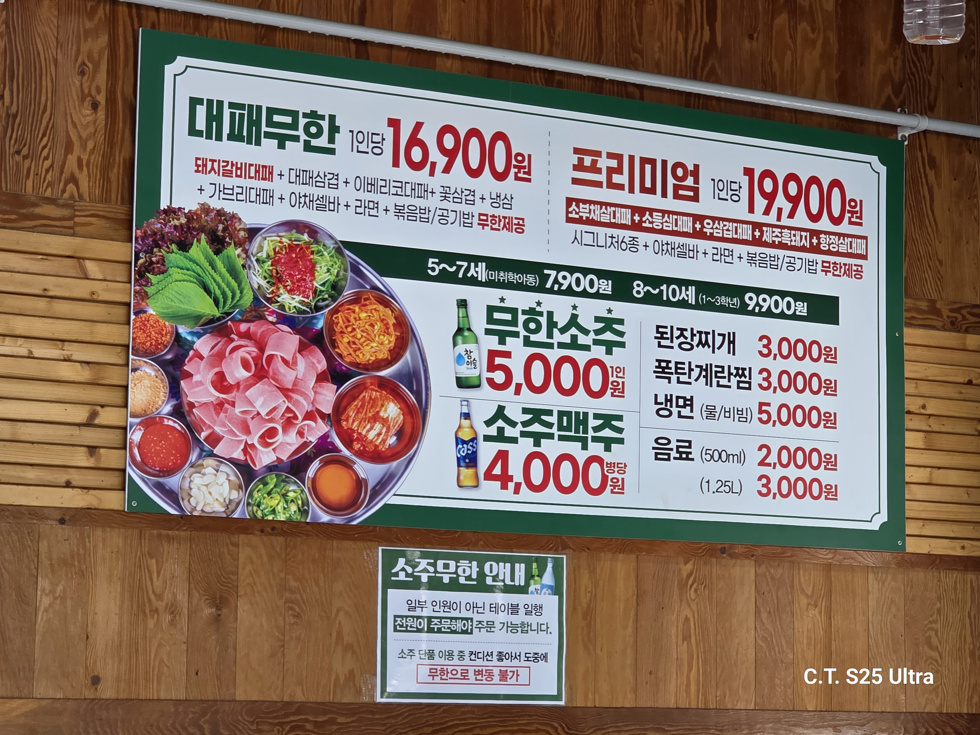 - 주요메뉴 : 엉터리 무한대패 (16,900원 / 1인 / 돼지고기), 프리미엄 무한대패 (19,900원 / 1인 / 돼지고기+소고기)