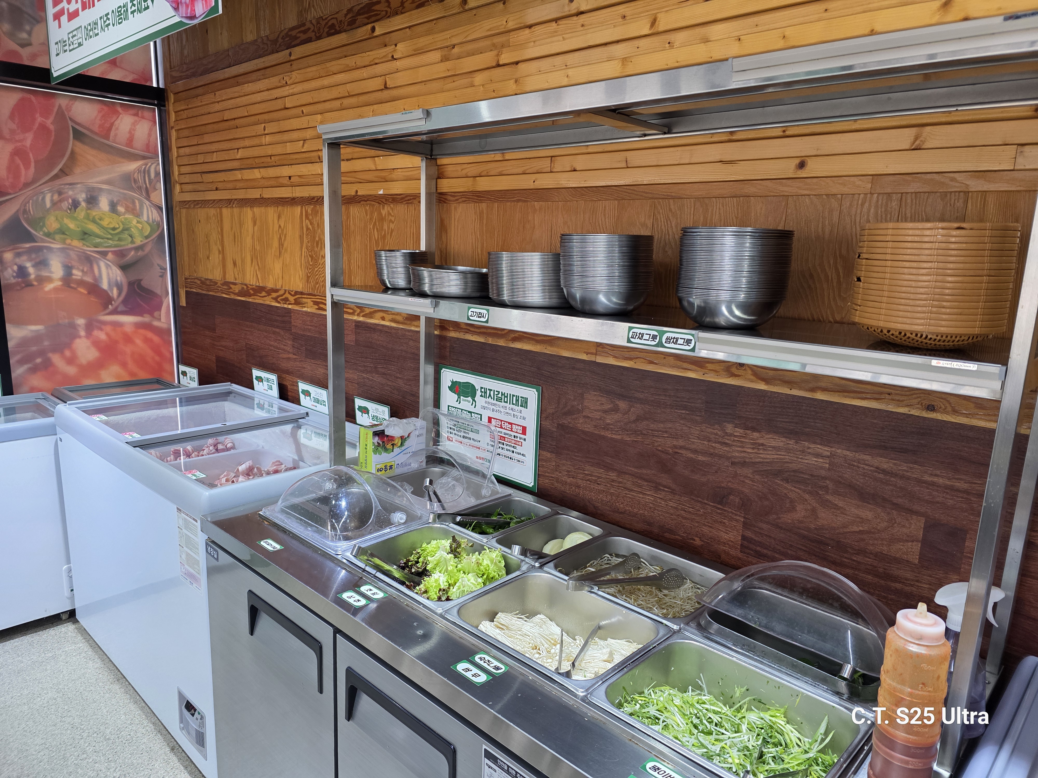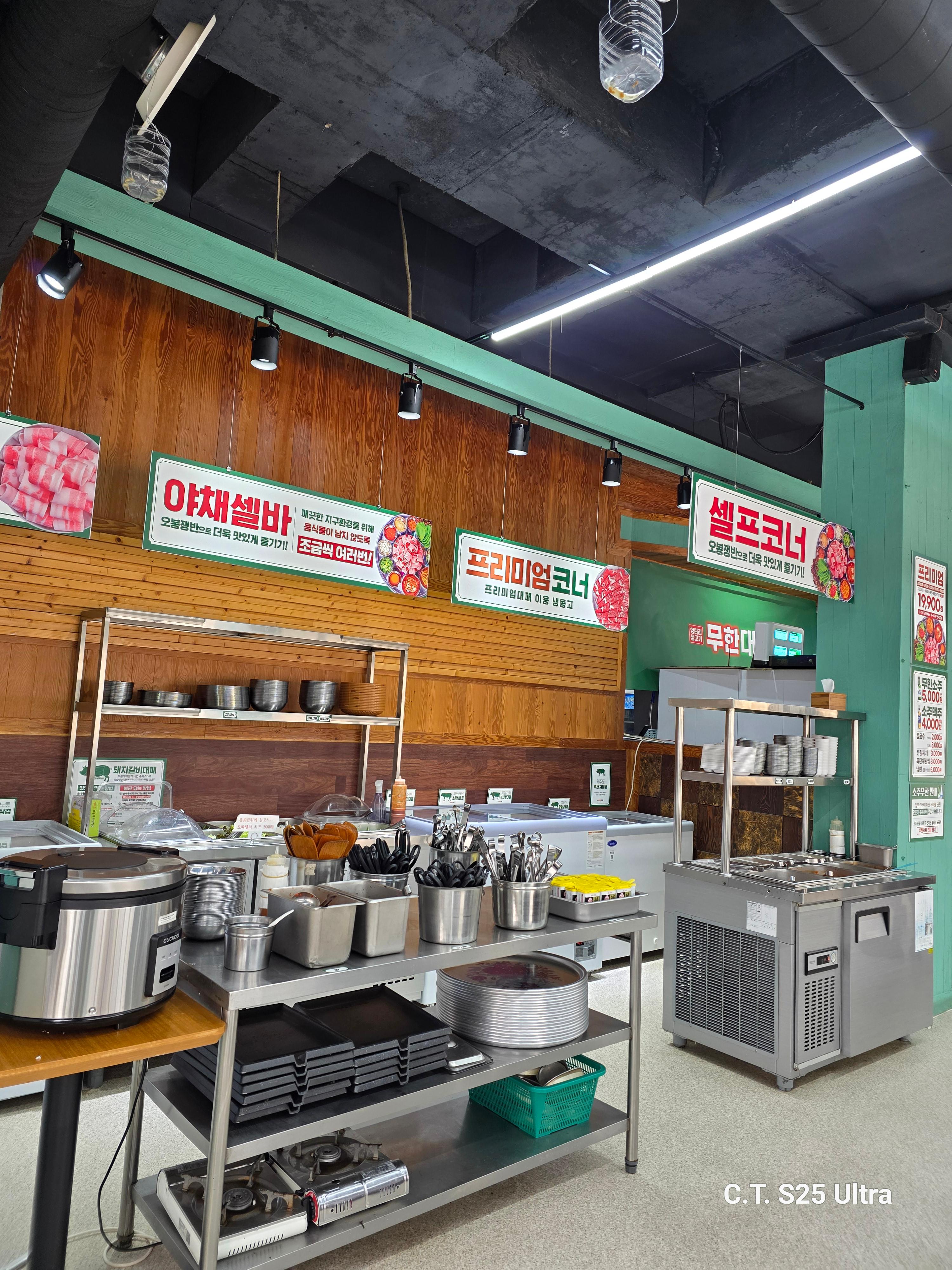 씩씩하게 "엉터리 무한대패 1인이요~"라고 주문하고, 사장님이 준비해주신 자리에 앉아 매장 사진도 찍고 사장님의 안내사항도 열심히 들은 후 호랭이의 냉삼 만찬을 준비하러 발딱 일어나서 셀프바로 향했어요.