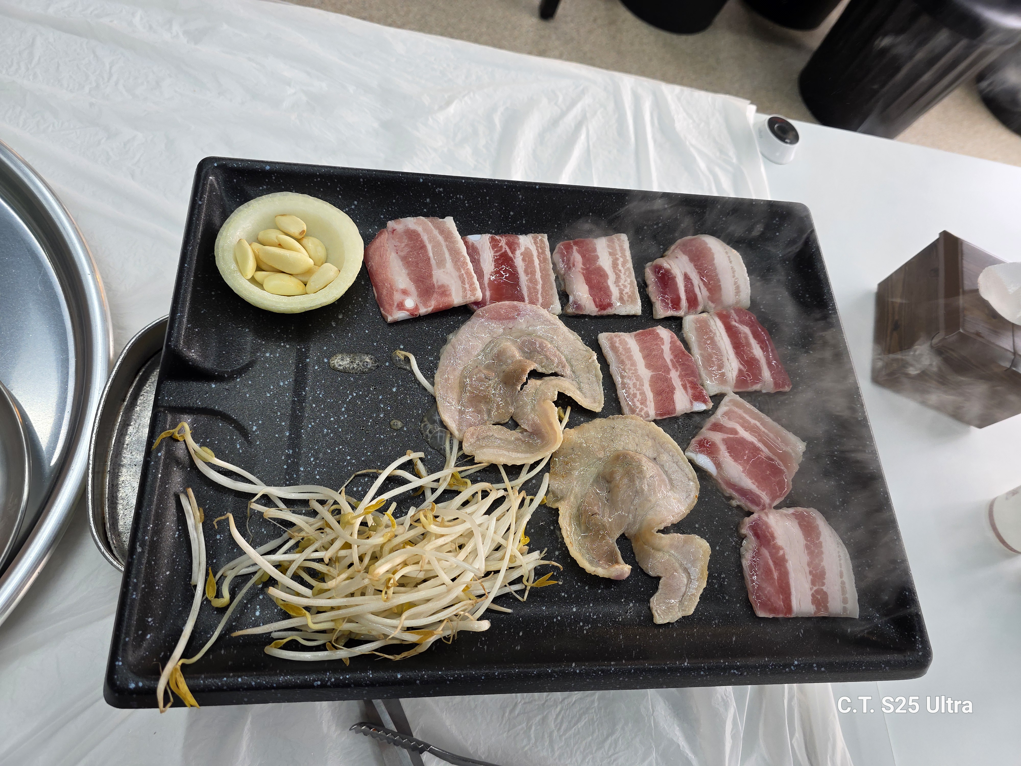 친절하신 사장님이 불판을 미리 달궈주신 덕분에 바~로 냉삼 투입!