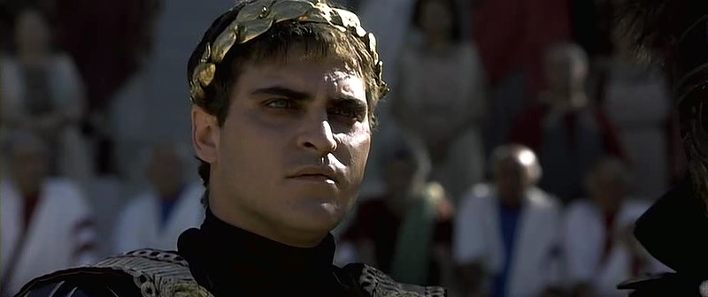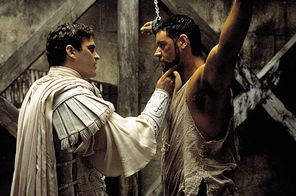 코모두스는 아버지인 아우렐리우스 황제가 아들인 자신이 아닌 막시무스 장군을 후계로 하려 하자 분노와 질투에 눈이 멀어 아버지를 살해하고(헐~), 막시무스에게 자신의 편에 서라 말한다.