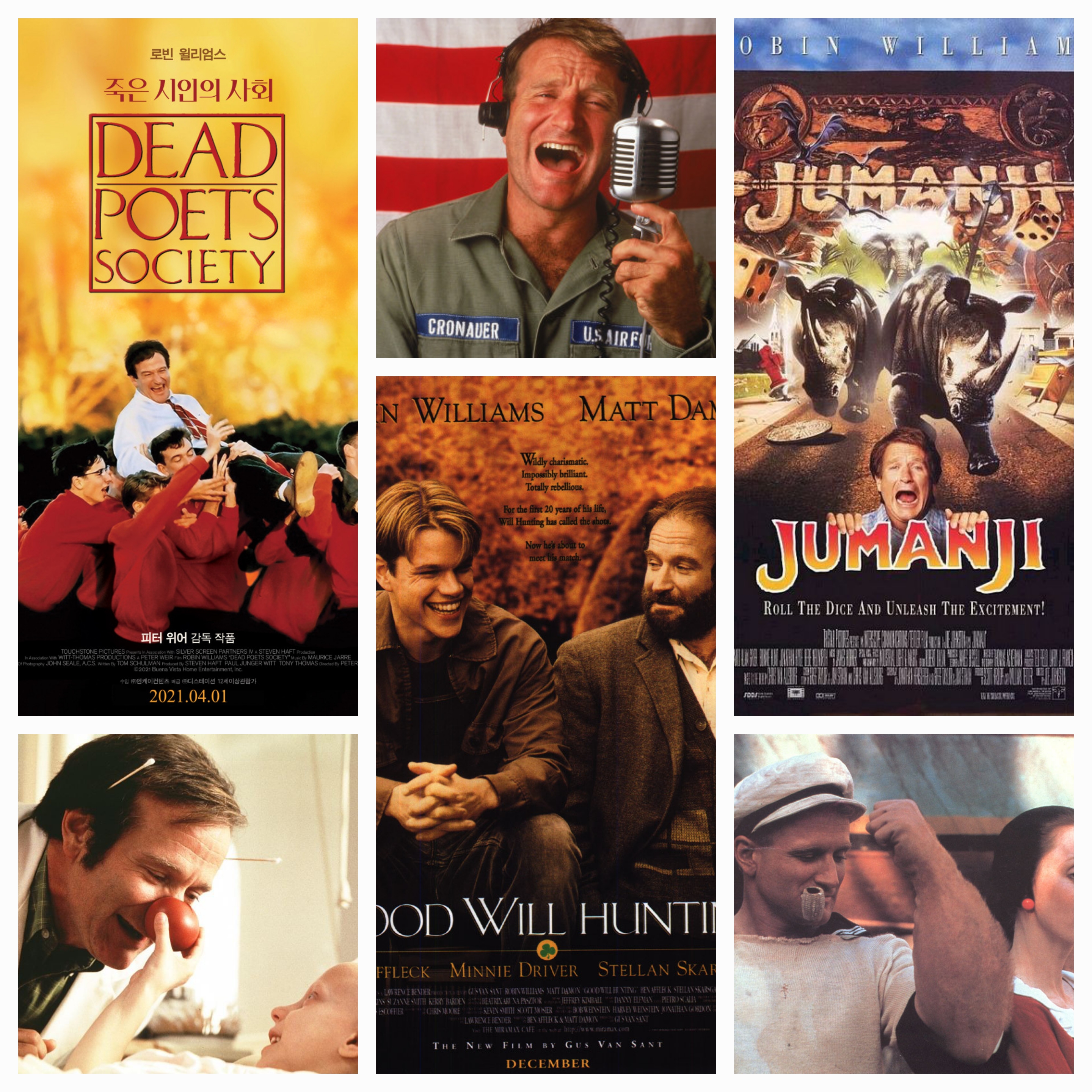 로빈 윌리암스 배우는 1980년대부터 본격적으로 영화에 출연하기 시작했는데요, 대표작으로 "굿모닝 베트남"(1987), "죽은 시인의 사회"(1990), "사랑의 기적"(1991), "후크"(1992), "피셔킹"(1993), "미세스 다웃파이어"(1994), "쥬만지"(1996), "굿 윌 헌팅"(1998) 등등등 정말 셀 수 없이 많은 작품에서 활약을 한 배우입니다.