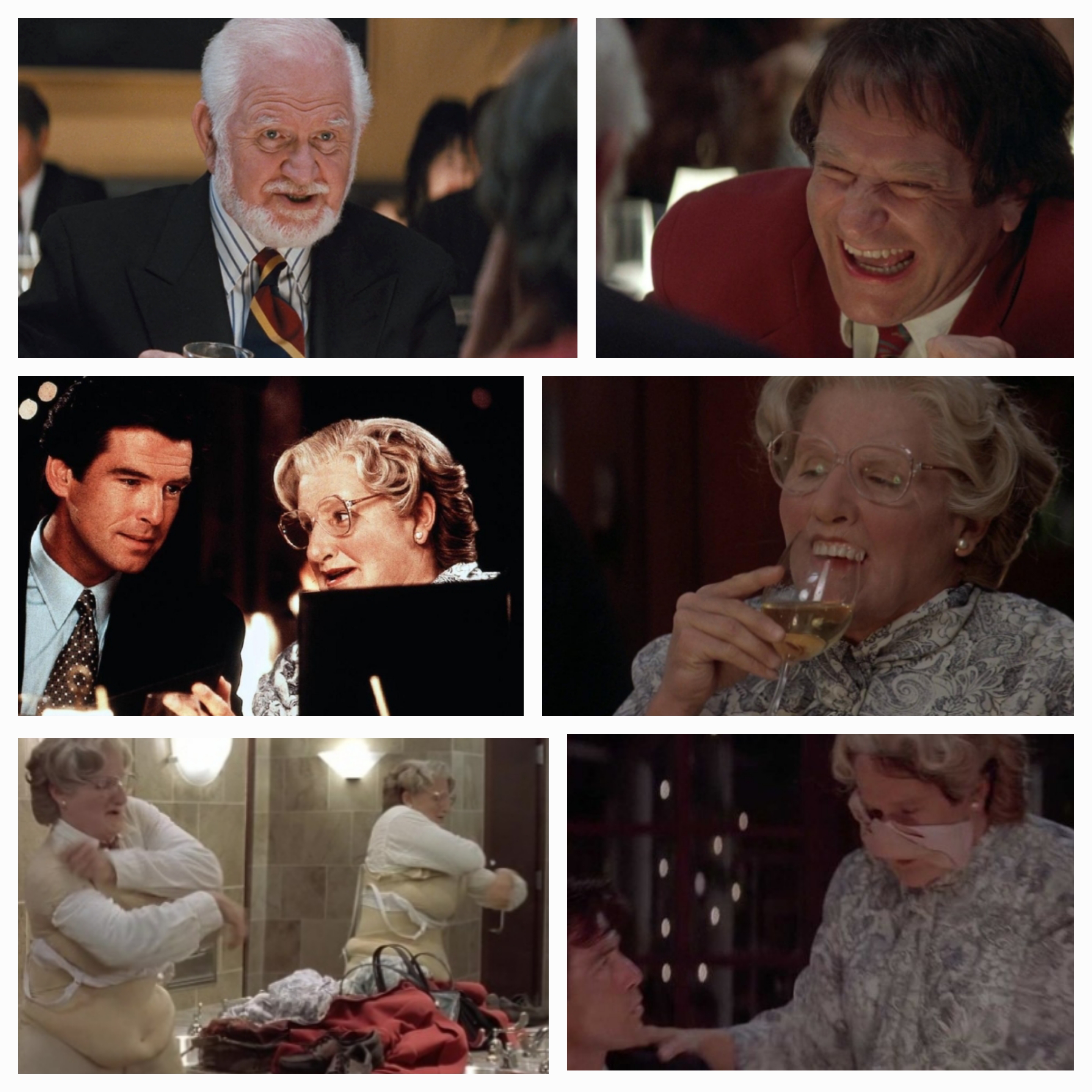 그런데 같은 날 미세스 다웃파이어로 미란다와 아이들, 스튜어트와도 저녁약속이 잡히게 되고, 같은 레스토랑에서 2개의 약속 수행을 위해 반복적으로 남자 다니엘이었다가 여자 미세스 다웃파이어로 변신을 해가며 2개의 테이블을 오간다.