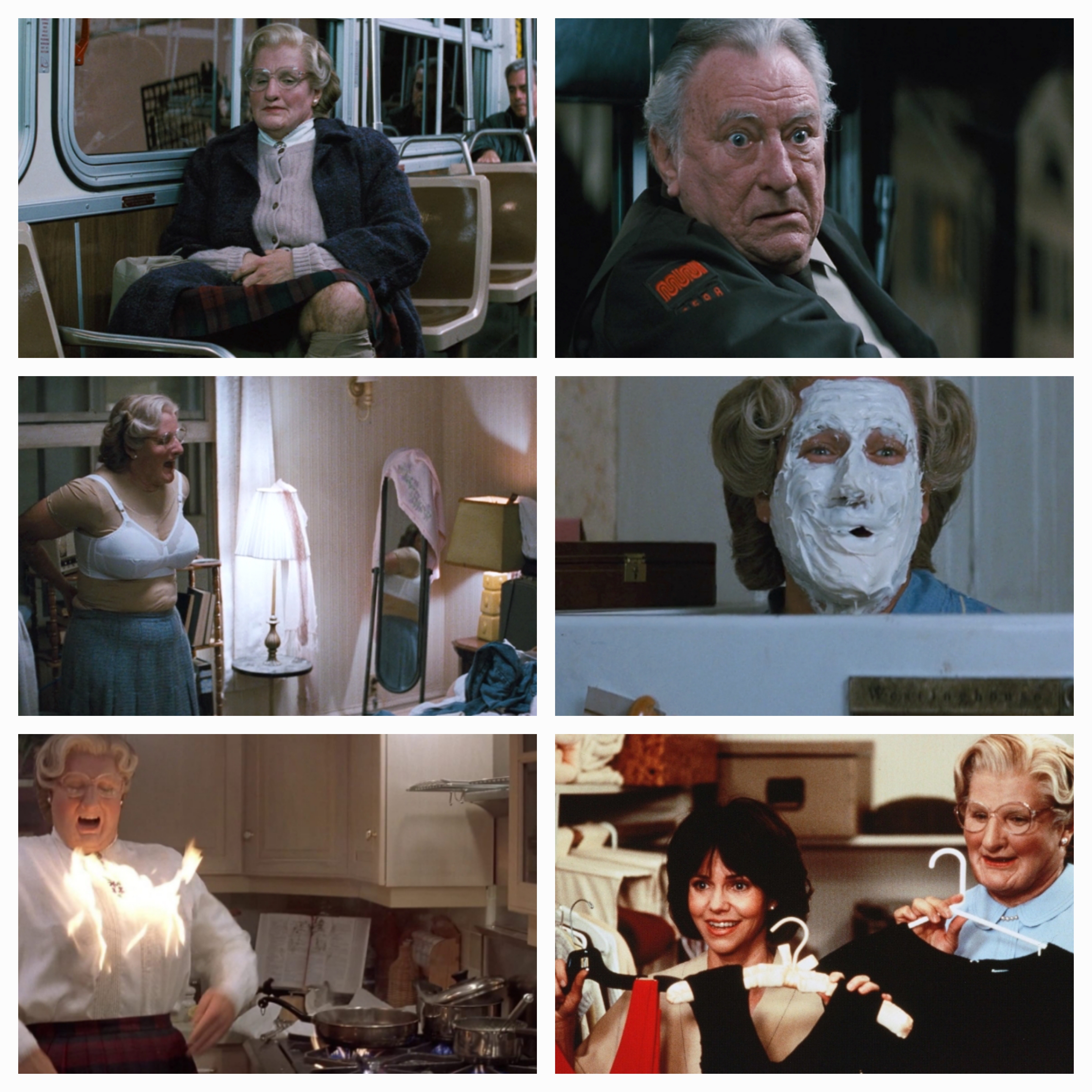 그런데 같은 날 미세스 다웃파이어로 미란다와 아이들, 스튜어트와도 저녁약속이 잡히게 되고, 같은 레스토랑에서 2개의 약속 수행을 위해 반복적으로 남자 다니엘이었다가 여자 미세스 다웃파이어로 변신을 해가며 2개의 테이블을 오간다.
