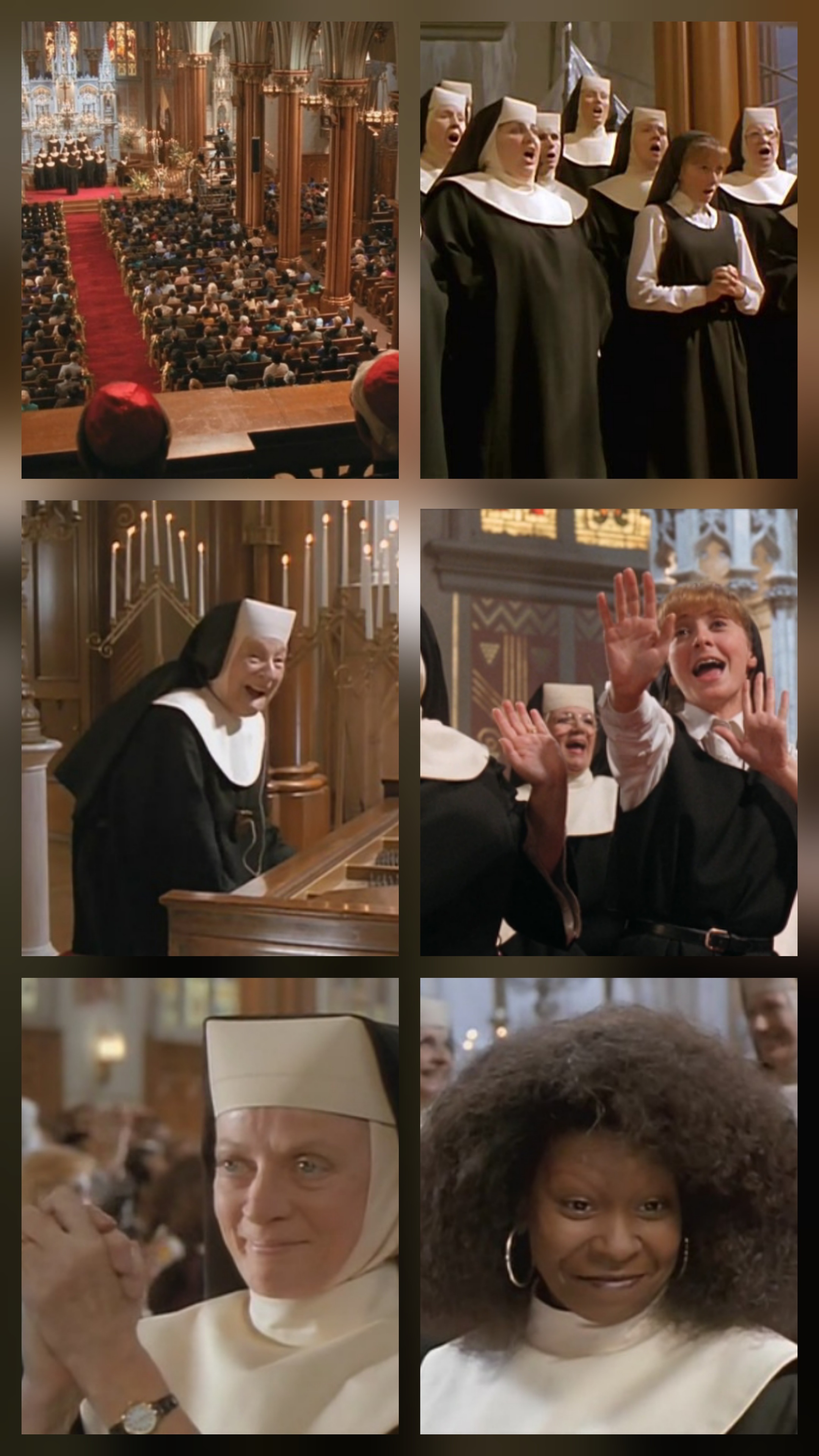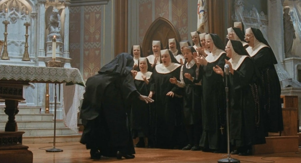 들로리스가 지휘를 맡은 성가대가 무대에 올라 노래를 하는데 모두가 깜짝 놀랄 실력과 파격적인 곡으로 무대에 올랐고 수녀들의 노랫소리에 텅 비어있던 성당에 사람들이 들어오기 시작한다.