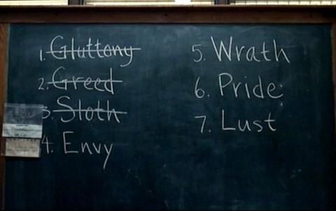 그리고 "지옥에서 벗어나 빛에 이르는 길은 멀고도 험하다"라는 메모를 발견하고 연쇄살인임을 직감한 서머셋은 첫 번째 사건 식탐(Gluttony), 두 번째 사건 탐욕(Greed)에 이어 7대 죄악 중 나머지 5번(envy 시기, 질투 / lust 색욕, 음욕 / pride 교만, 거만 / sloth 나태 / wrath 분노)의 살인이 남아있다고 얘기한다.
