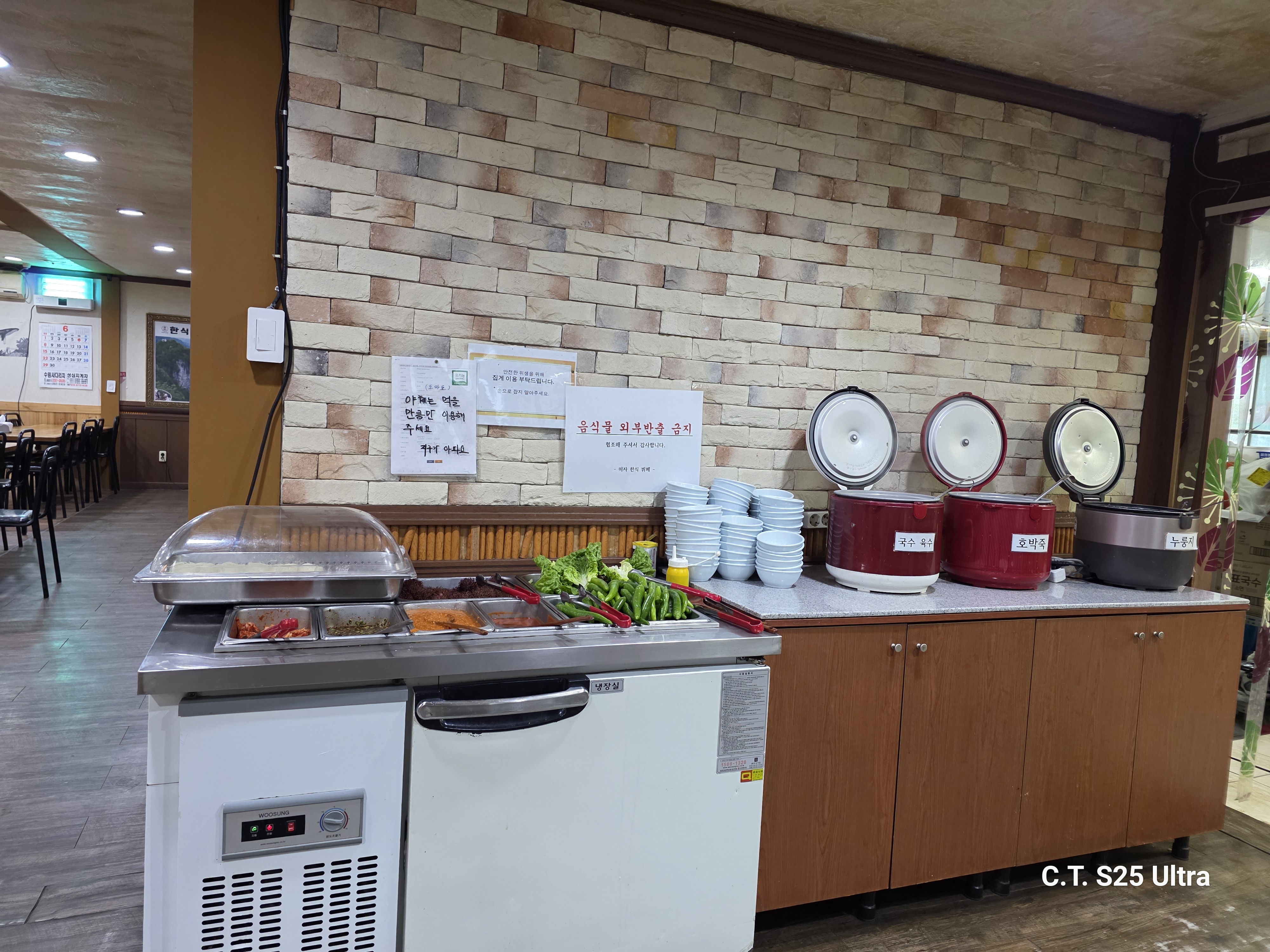 건물은 낡아보였지만, 직원분들이 계속해서 음식주변을 깨끗하게 정돈하시고, 식기들은 적외선 살균기 속에서 얌전~히 대기하고 있는 모습들이 청결해 보여서 좋았어요.