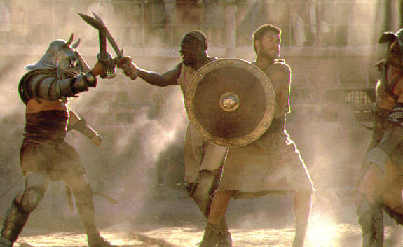 콜로세움에서 벌어지는 황제 코모두스와 막시무스의 대결